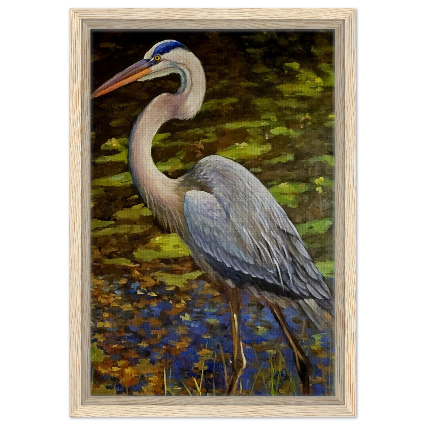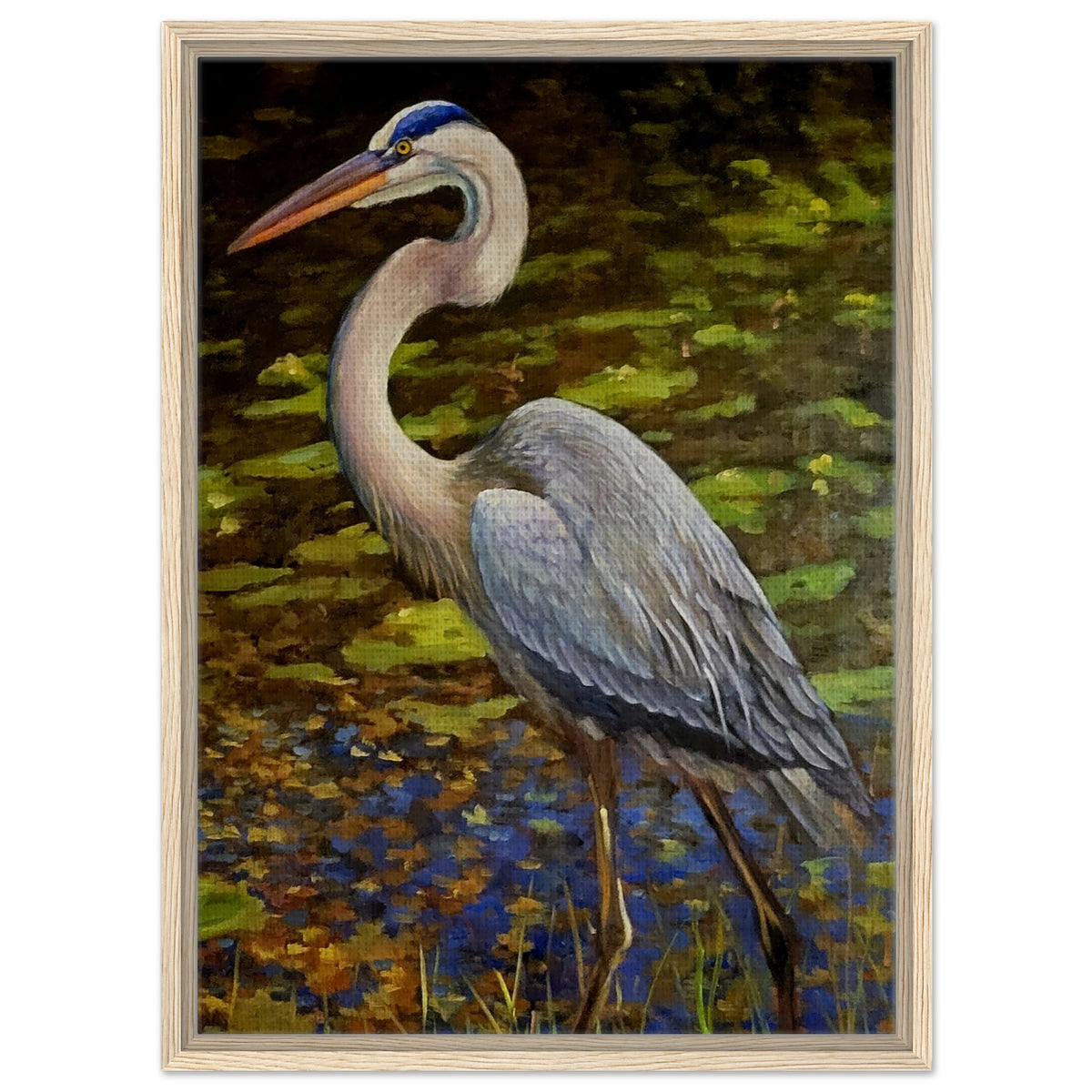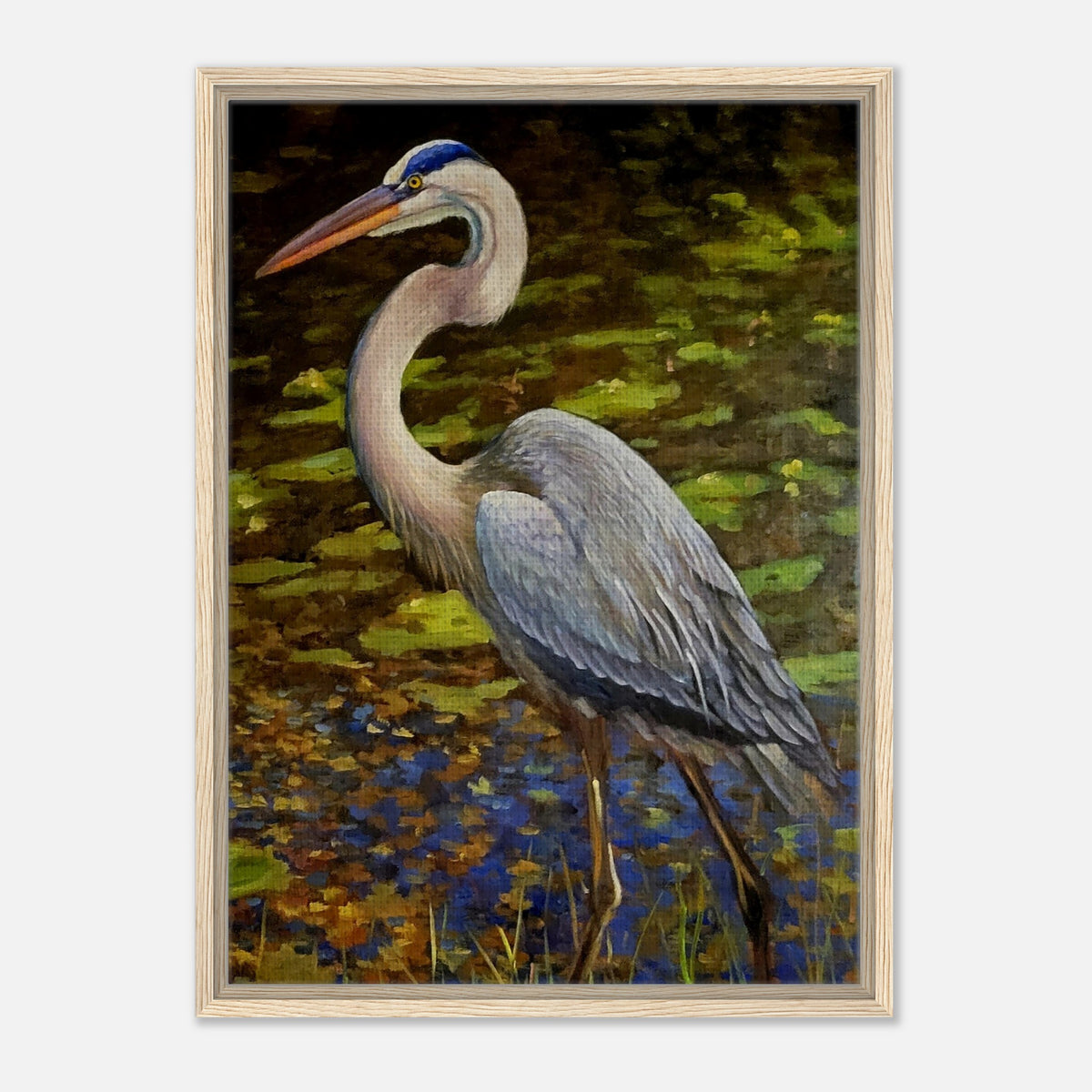 Framed Canvas Print - Blue Heron Wading Through Water Art - 30x45 cm / 12x18″ / Wood frame