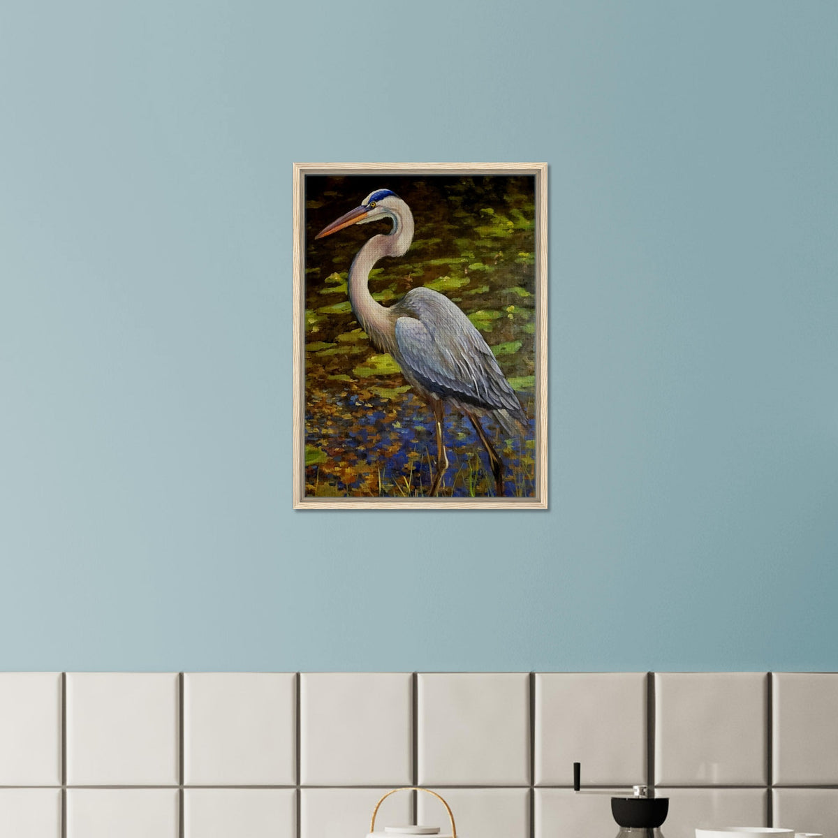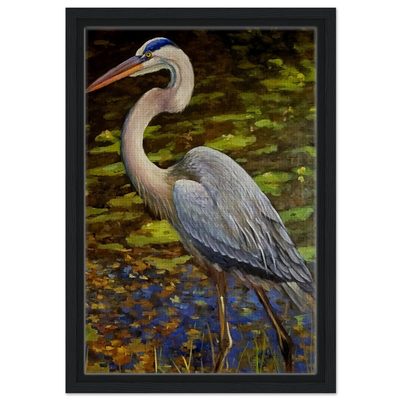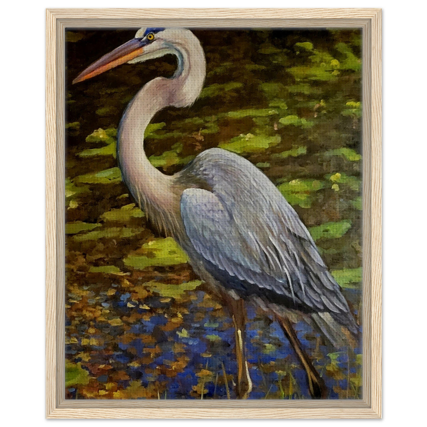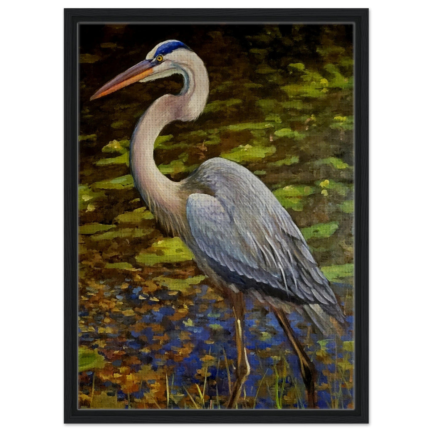 Framed Canvas Print - Blue Heron Wading Through Water Art - 30x45 cm / 12x18″ / Wood frame