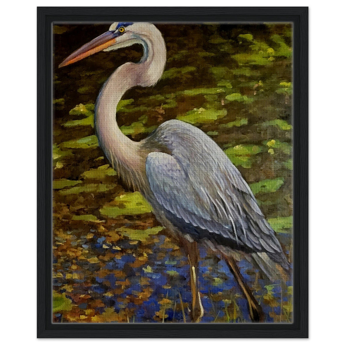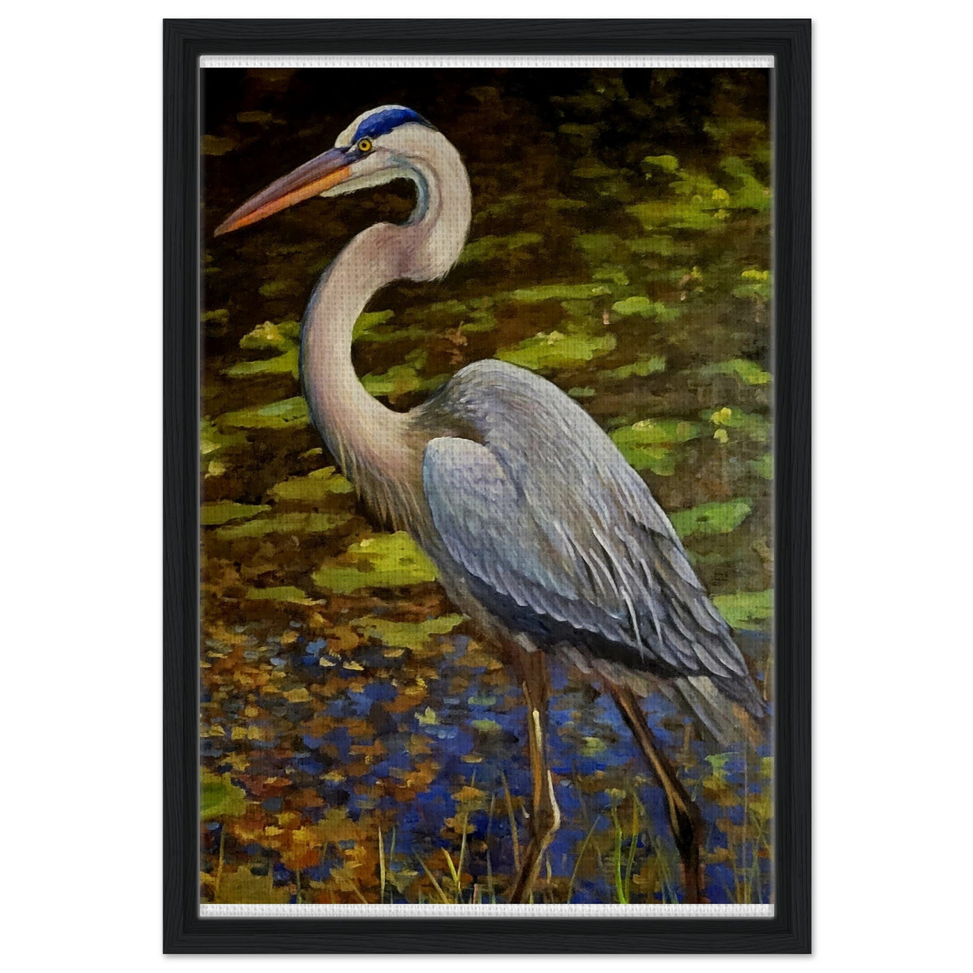 Framed Canvas Print - Blue Heron Wading Through Water Art